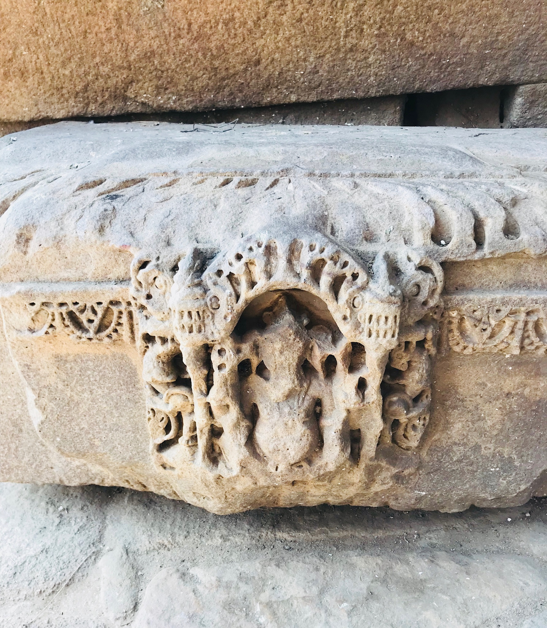 Petite divinité Hindoue sculptée dans une pierre de la mosquée du Qutb Minar – Delhi – Inde