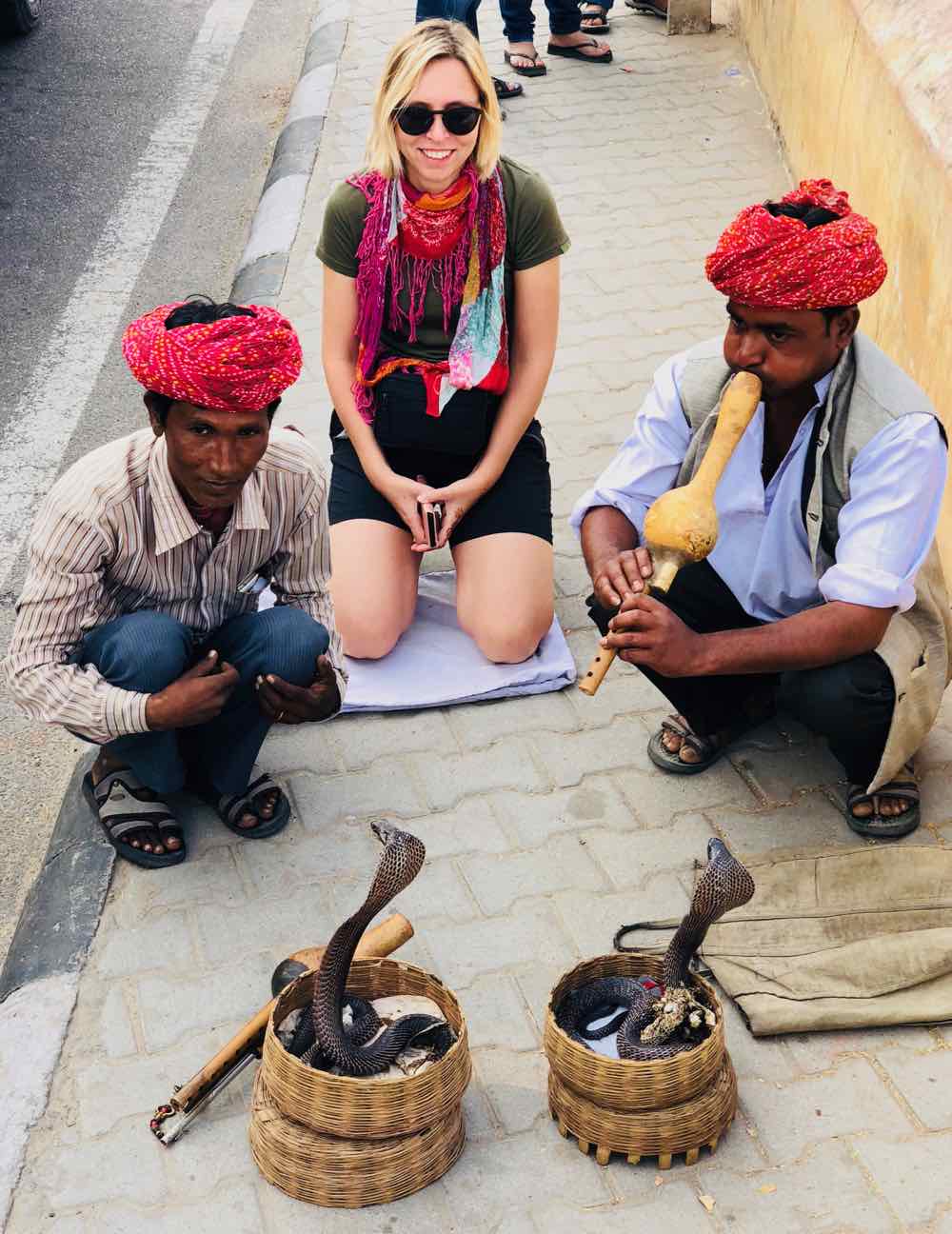 Charmeurs de serpents. Même pas peur (enfin, je les caresse pas non plus !) – Amber Palace – Rajasthan – Inde