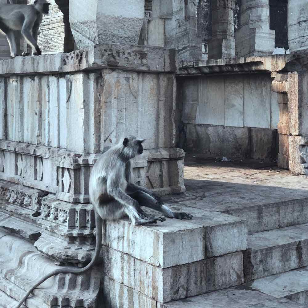 Singe dans les vieilles pierres des temples -Chittorgarh – Rajasthan – Inde