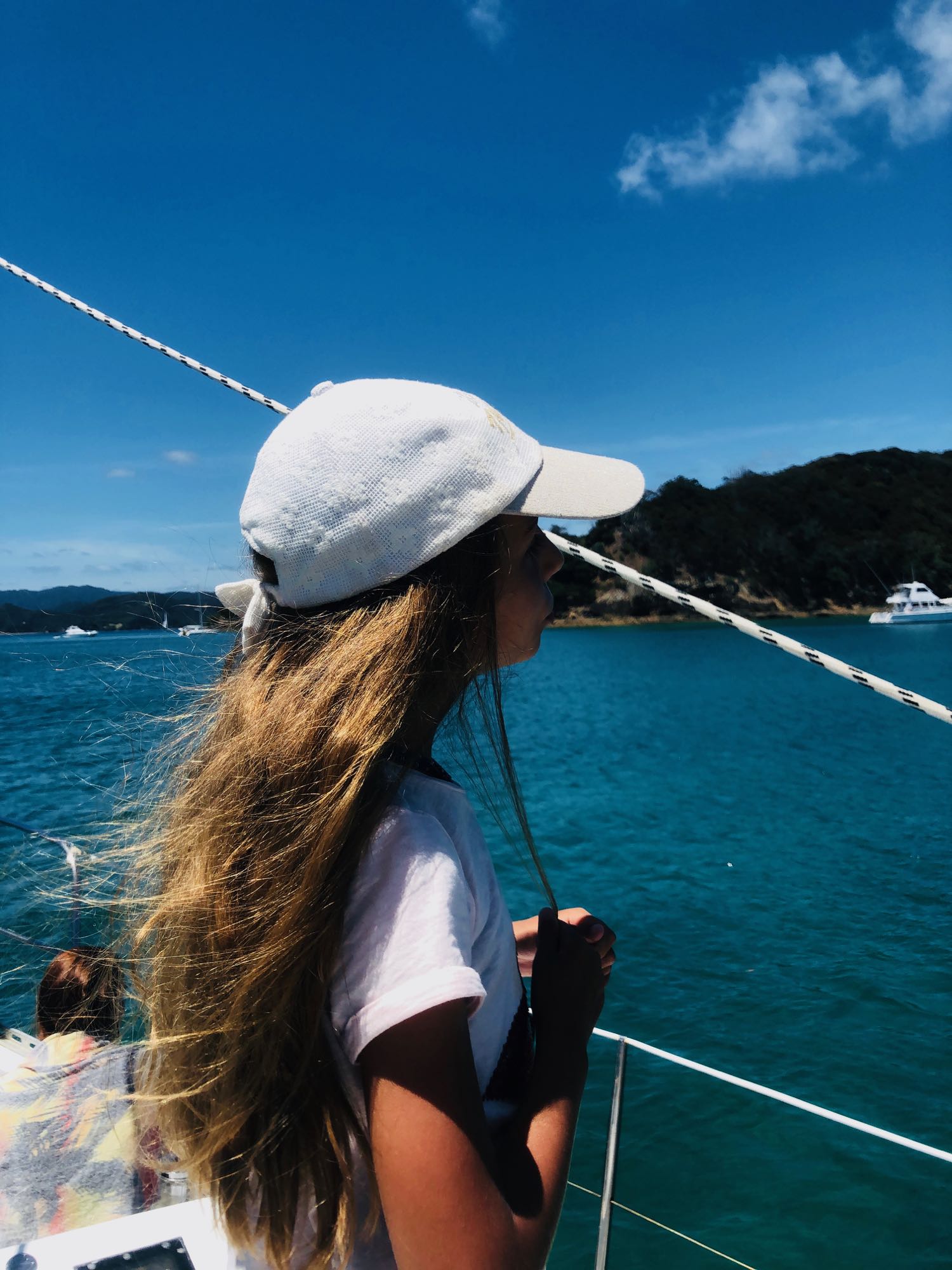 Fillette cheveux au vent – Bay of Island en voilier – Nouvelle Zélande