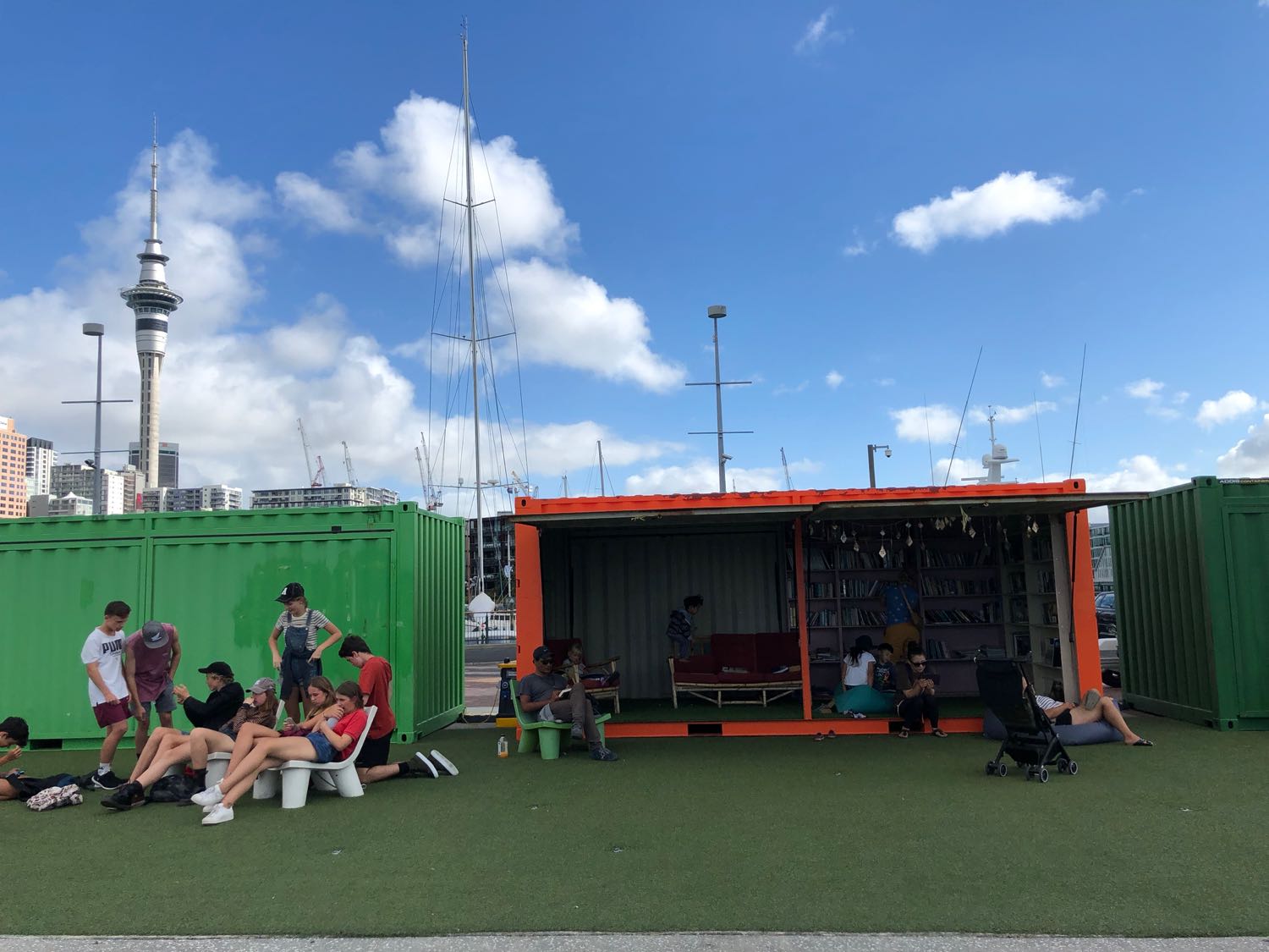 Container reconverti en café éphémère – Port d’Auckland – Nouvelle-Zélande