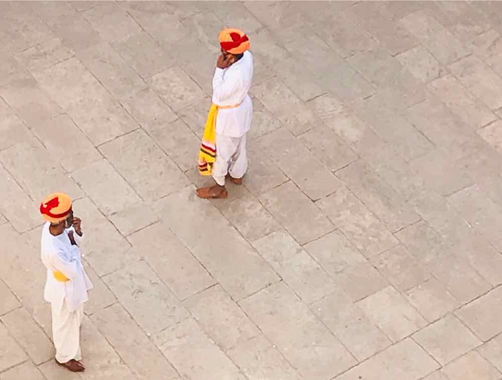 Conciliabules de gardes : turbans et téléphones portables – Fort de Jodhpur – Rajasthan – Inde