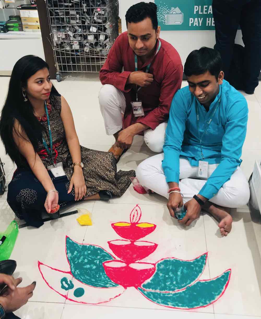 Happy Diwali ! - Dessins en sable coloré - Aéroport de Delhi- Inde