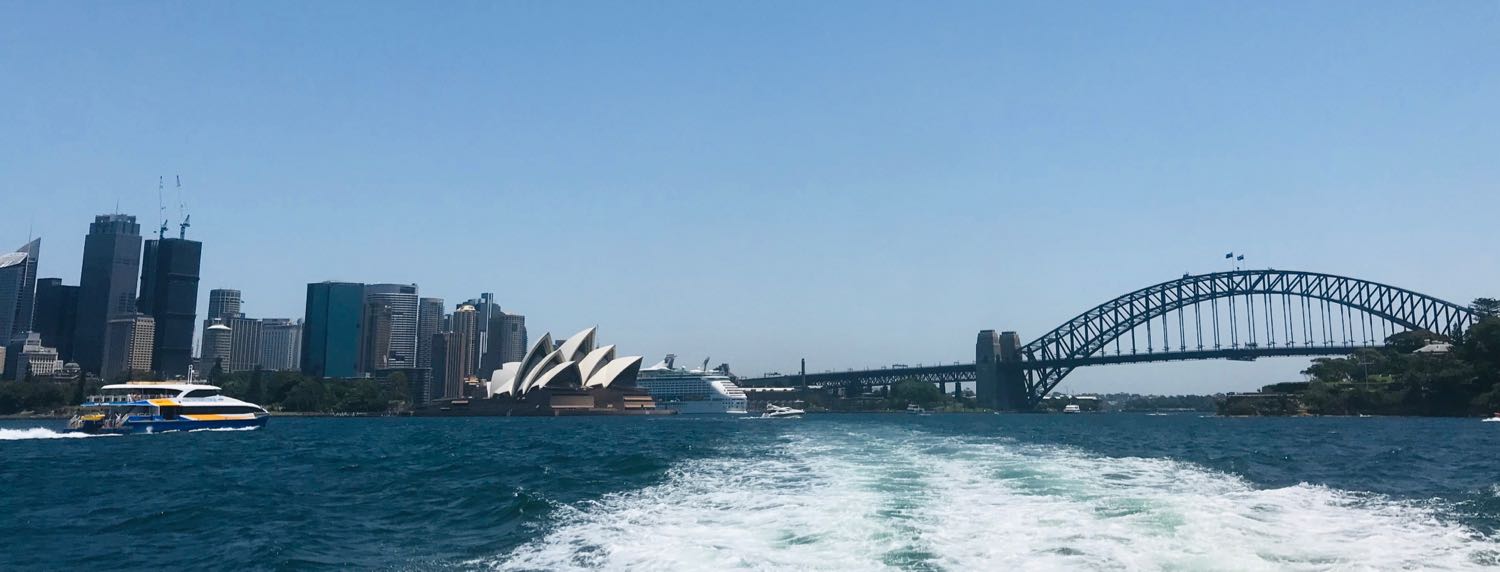 Depuis le ferry, vue sur l’opéra, la city et le pont de Sydney – Australie