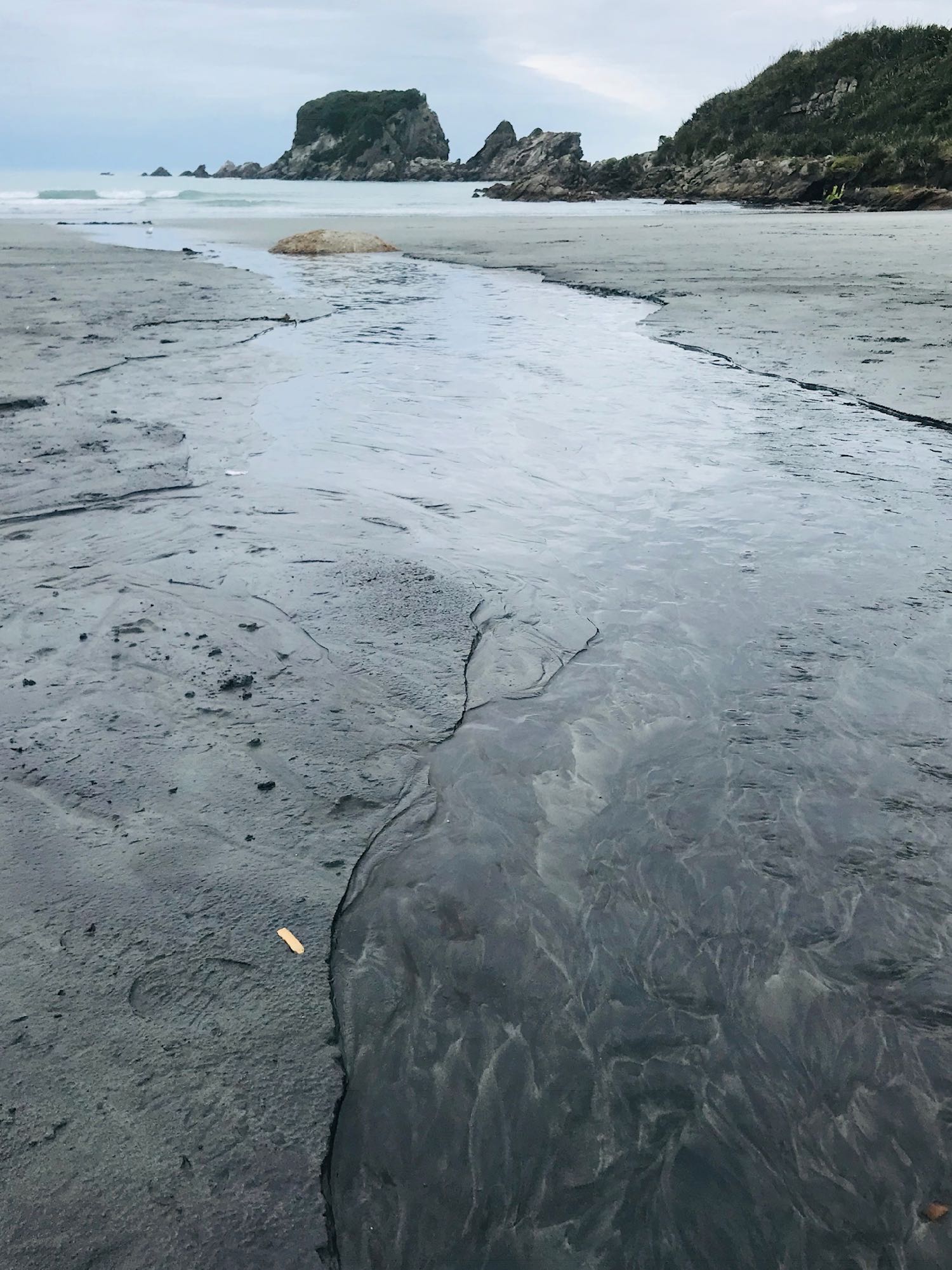 Rivière, Plage et sable noir – Environs de Westport – Nouvelle-Zélande