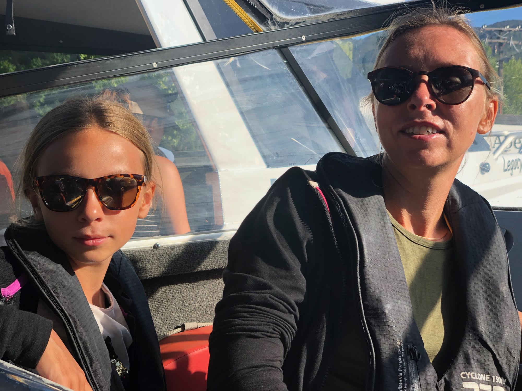 Dans le bateau, derrière le tracteur - En route pour Bark Bay - Parc Abel Tasman - Nouvelle-Zélande