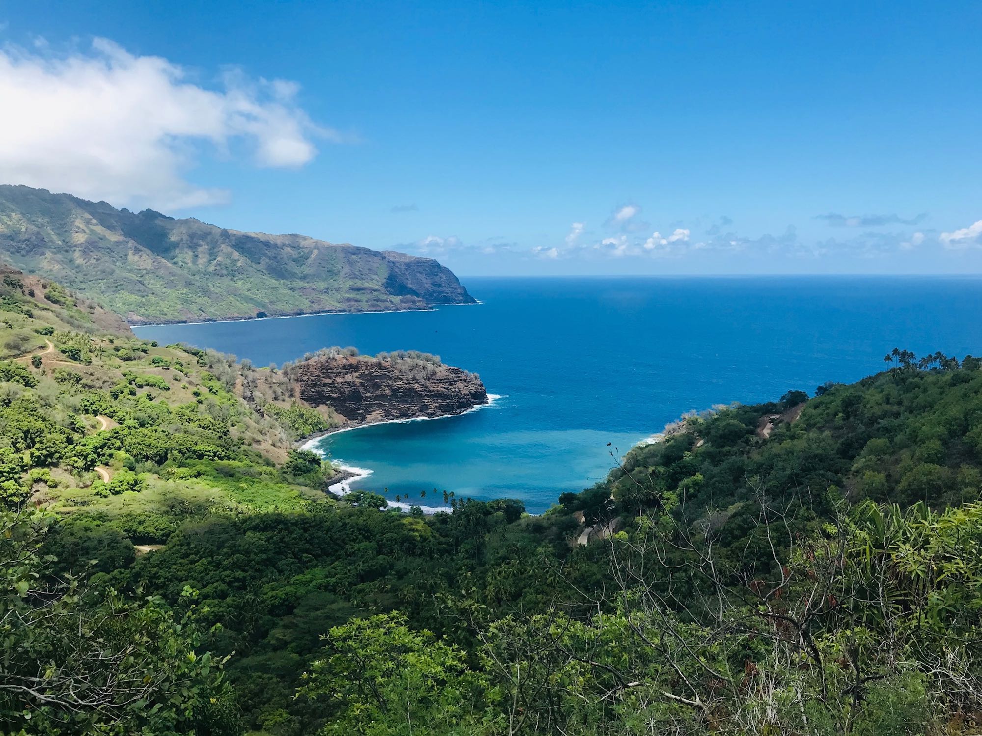 Les montagnes et en bas, la plage – Hiva Oa – Iles Marquises – Polynésie