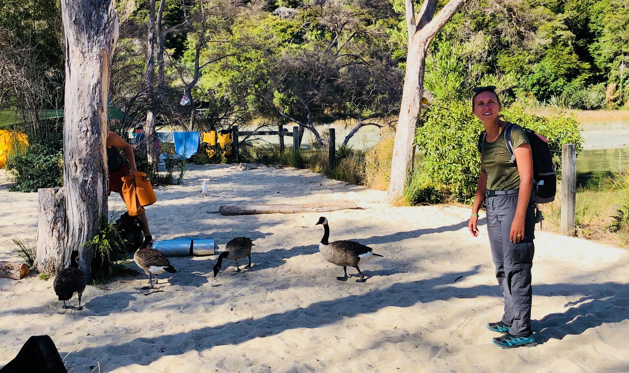 Tiens mais y'a du monde ici - Camping sauvage à Medlands Beach, avec les canards - Parc Abel Tasman - Nouvelle-Zélande