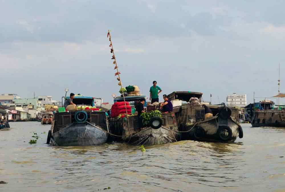 Bateaux du marché flottant et « perche à légumes » – Can Tho – Vietnam
