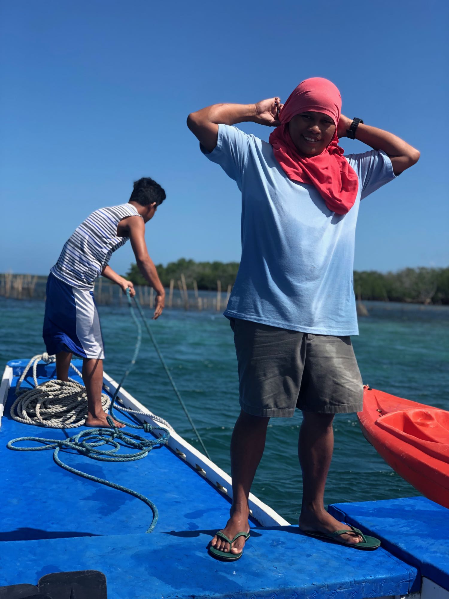 Il a pas l’air de pirates notre équipage ? – Sur la Bangka pour rejoindre la mangrove – Pangangan Island – Bohol – Philippines