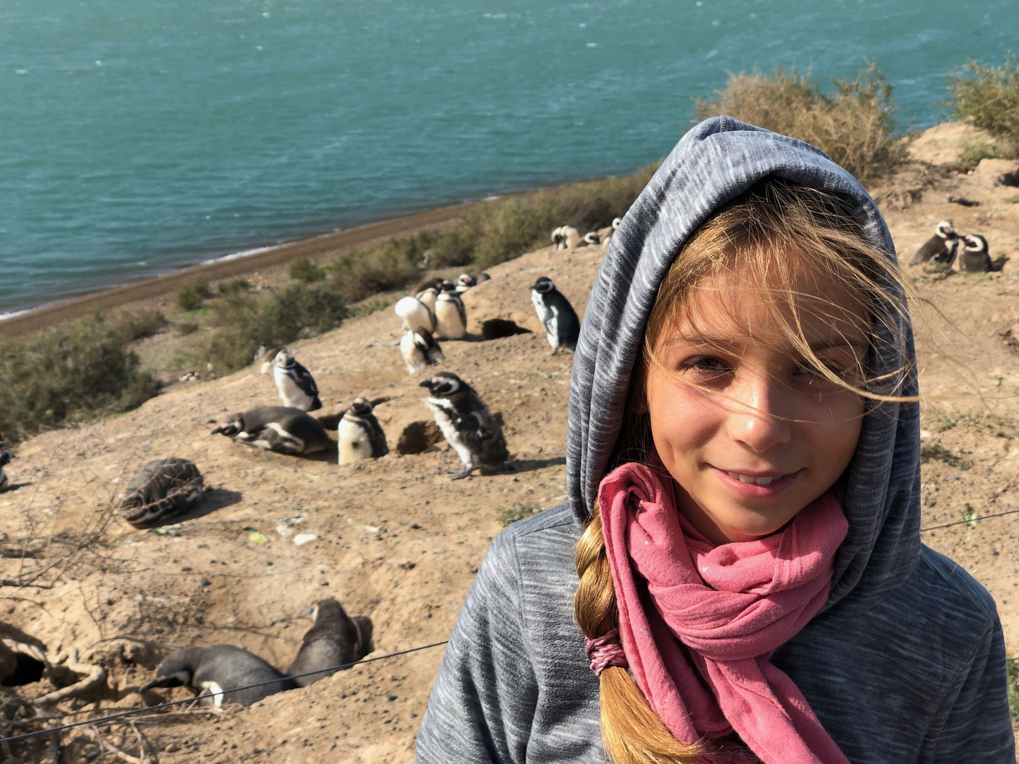 Fillette mimi découvrant les manchots – Péninsule Valdes – Argentine