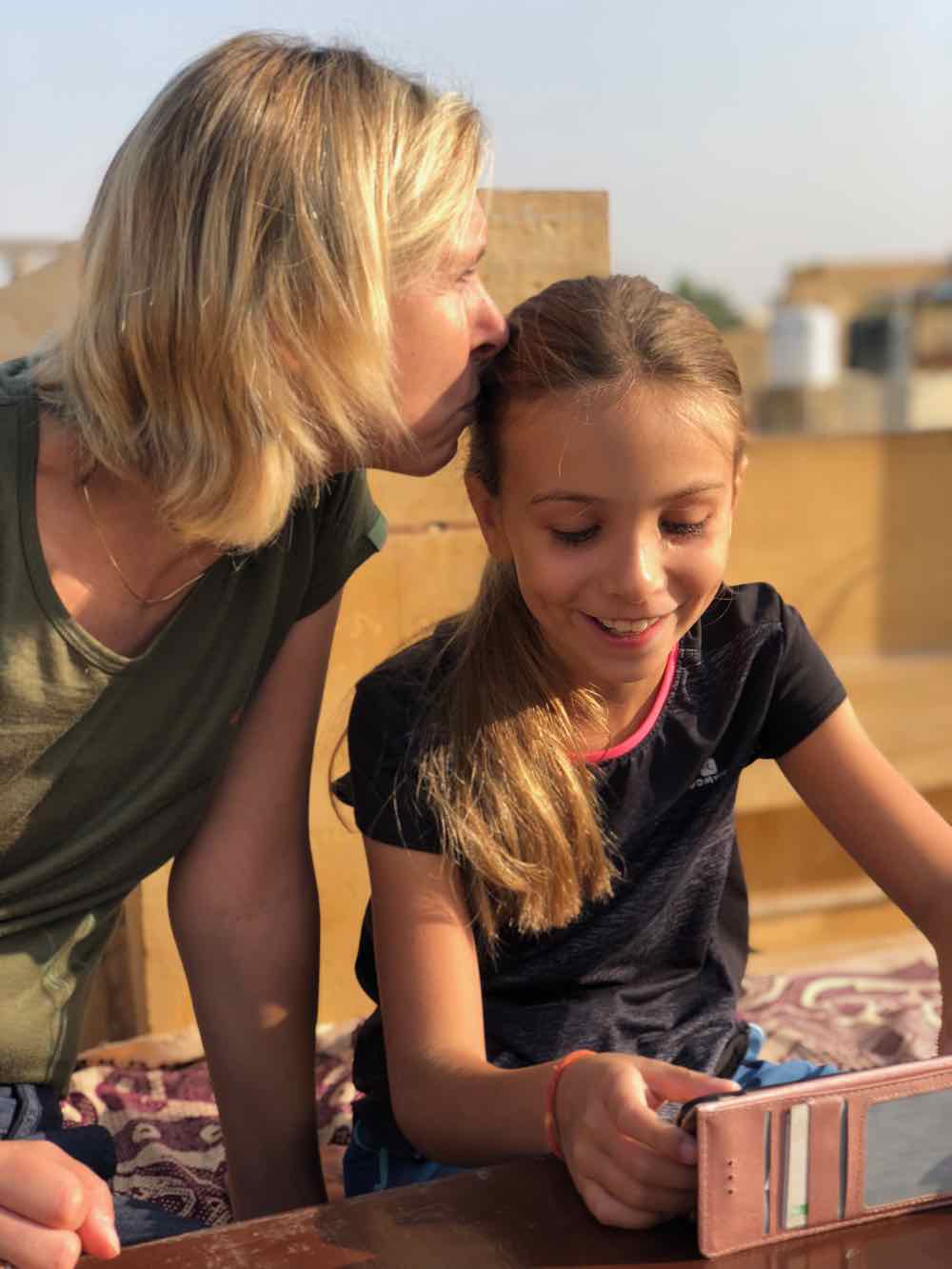 Tendresse mère fille sur le rooftop de notre haveli -Jaisalmer -Rajasthan – Inde