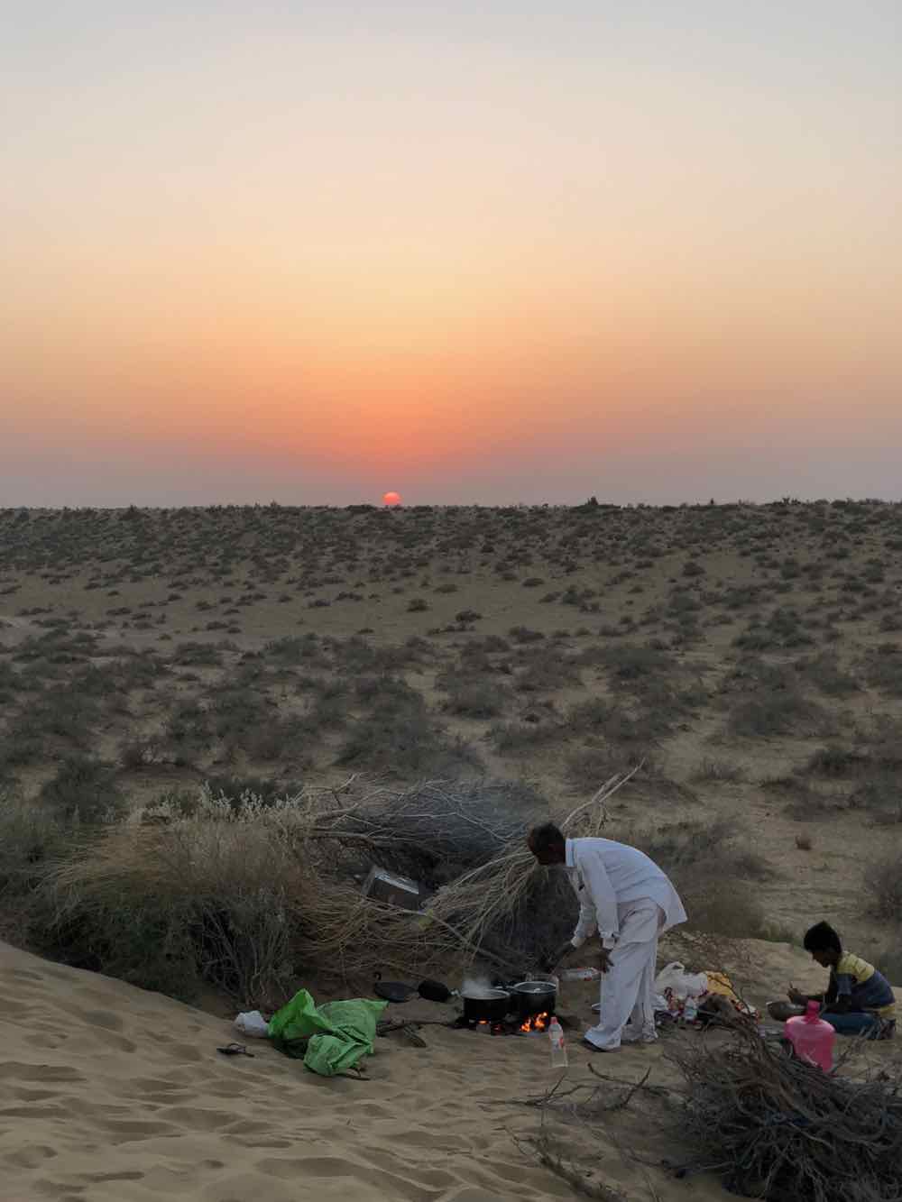 Préparation du repas et coucher de soleil- Désert du Thar – Rajasthan – Inde